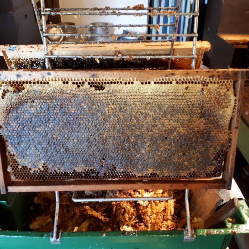 Prvi korak je izvaditi okvire s poklopljenim medom iz košnice. Važno je da je okvir s medom poklopljen više od trećine površine, a to znaći da je idealne kvalitete, odnosno kada pčele poklope med znači da je med dovoljno gust da se ne može pokvariti.