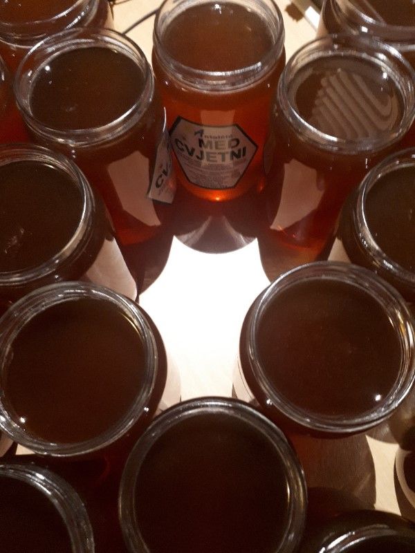 Kao što vidite iz teksta, med u teglicu dolazi isti kakav je i u košnici. Uklanjaju se samo mehaničke nečistoće koje završe u medu kada se otklapaju poklopci sa ćelija. Također je važno napomenuti da med koji mi proizvodimo i pakiramo ne dodiruje nikada ljudska ruka. To je važno zbog zdravstvene ispravnosti meda kao i same kvalitete meda. Na zaštitnoj traci postoji i jedinstveni serijski broj uz pomoć kojega možete u Ministarstvu poljoprivrede saznati točnu lokaciju s koje potiče med u vašoj teglici.